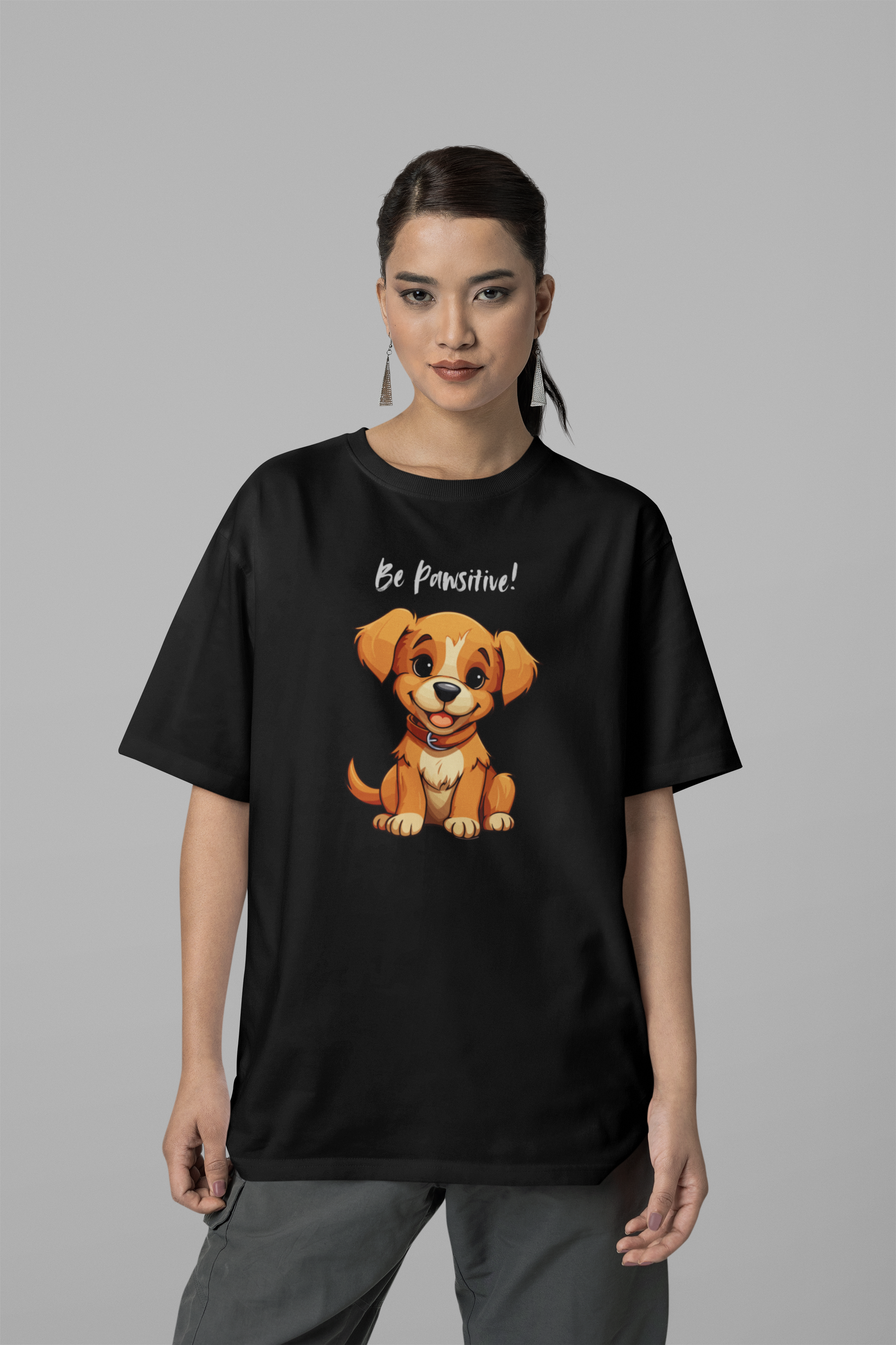 Oversized “Be Pawsitive” T-Shirt – Comfort with a Canine Twist