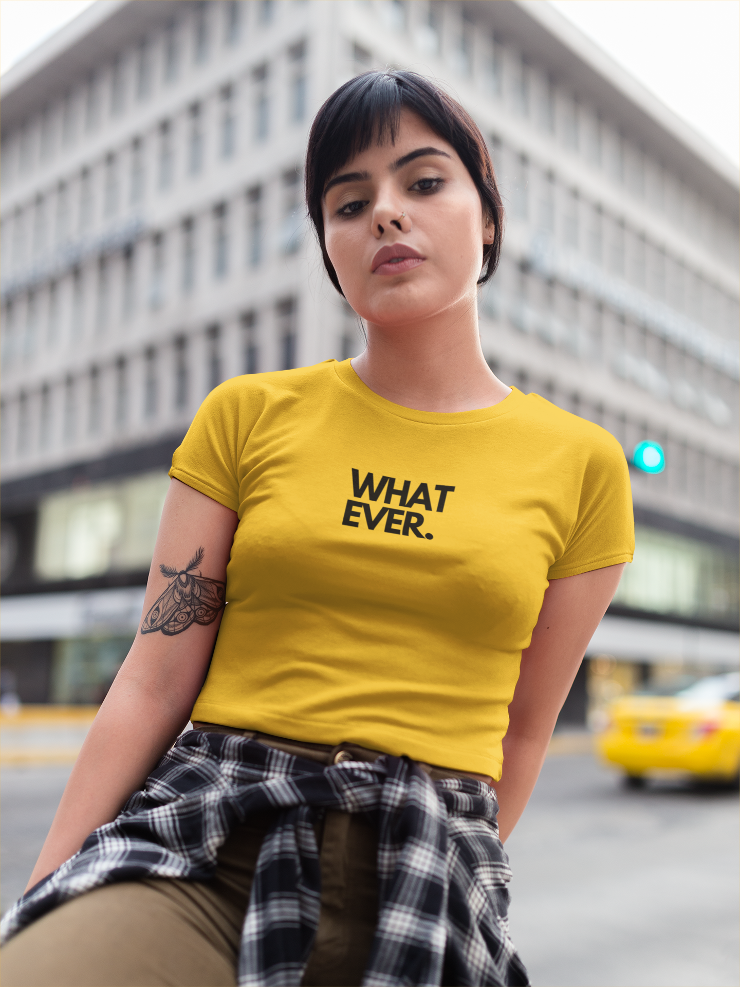 Design: Bold "Whatever." print front and center